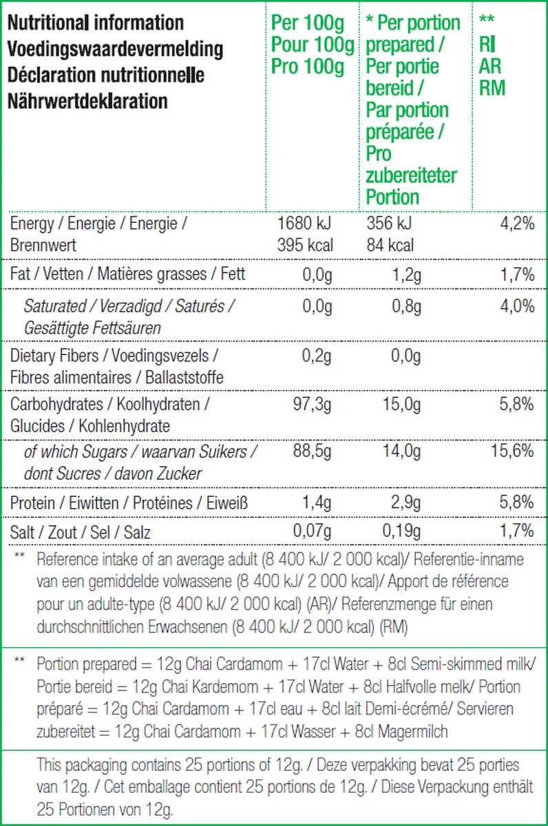 Kardemom is alomtegenwoordig in de Indische keuken. Onze kardemom chai heeft zoete en scherpe aroma’s en smaakt kruidig, warm tot pikant. Passionele Chalito’s zullen deze Chai Latte zeker appreciëren.