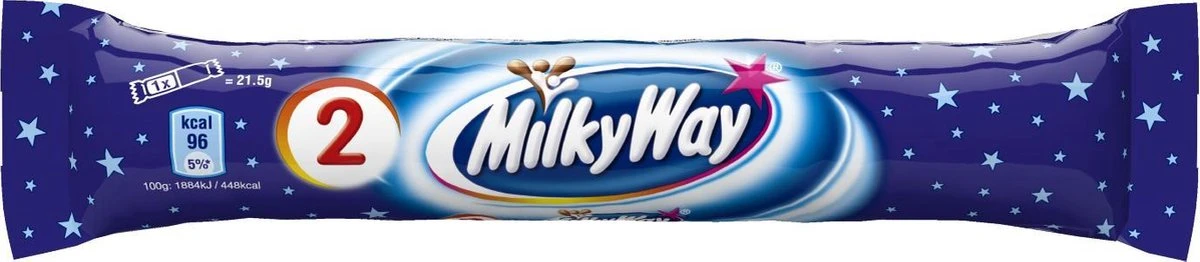 - MILKY WAY® chocoladesuikergoed, gemaakt in 1923 en ontworpen om de smaak van gemoute milkshakes vast te leggen, is vernoemd naar een beroemde drank met gemoute melk van de dag, niet naar het Melkwegstelsel. MILKY WAY®-repen zijn gemaakt van nougat met moutsmaak en karamel omhuld met melkchocolade.