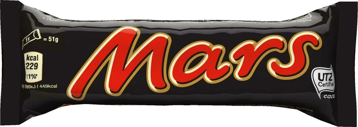 - Mars was de eerste candy bar die geintroduceerd werd en is al jaren een favoriet voor de chocolade liefhebbers. De Mars reep bevat luchtig geklopte nougat. een karamellaag en is omhuld met melkchocolade. Ideaal als tussendoortje of voor de lekkertrek. Het geeft direct energie.