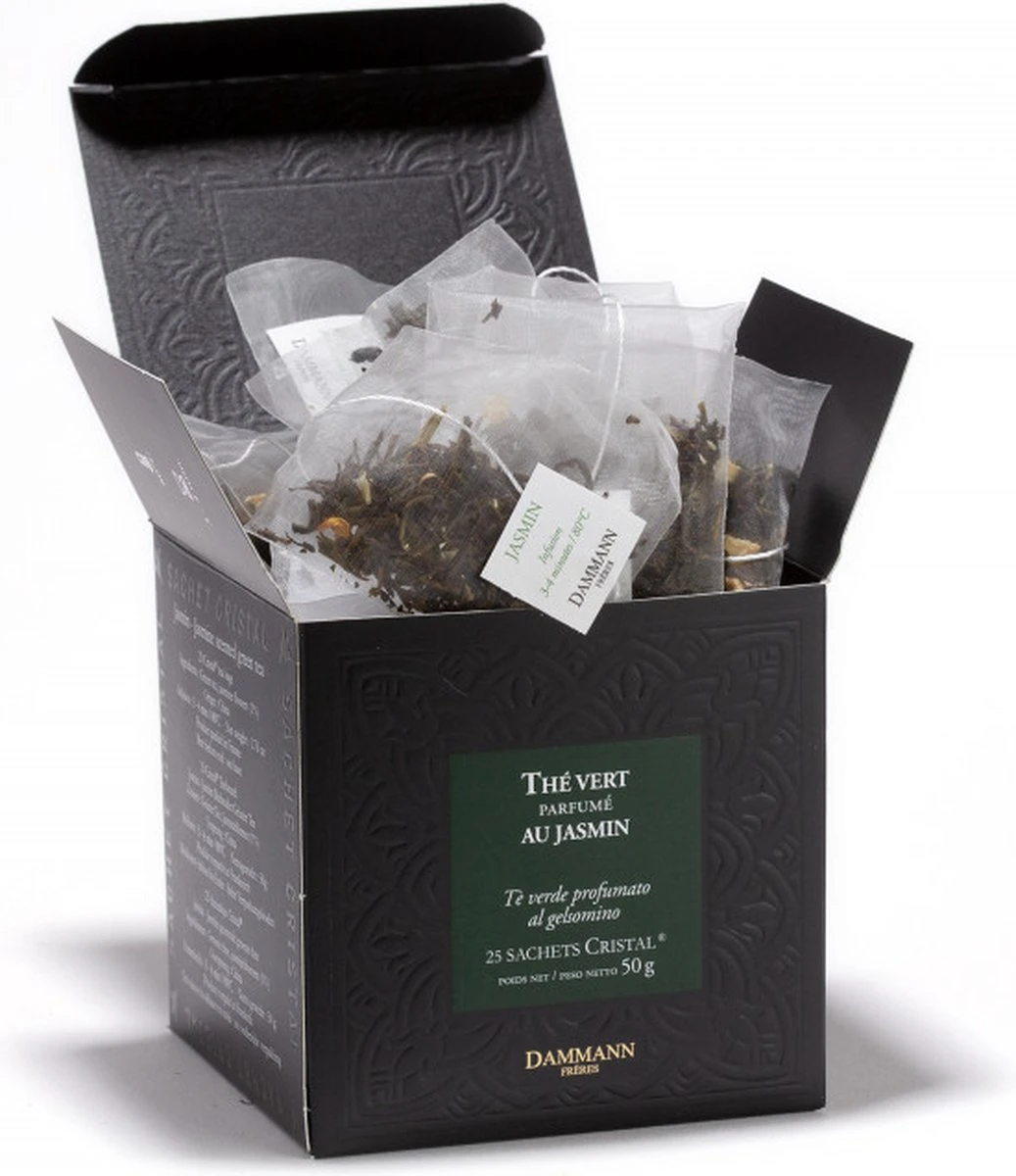 Dammann 3 X D3794 – Thé Vert Jasmin – 2 + 1 Gratis – Groene Jasmijn Thee 75 Cristal Zakjes – Melange Van Groene Thee – Premium Thee + Theeblik