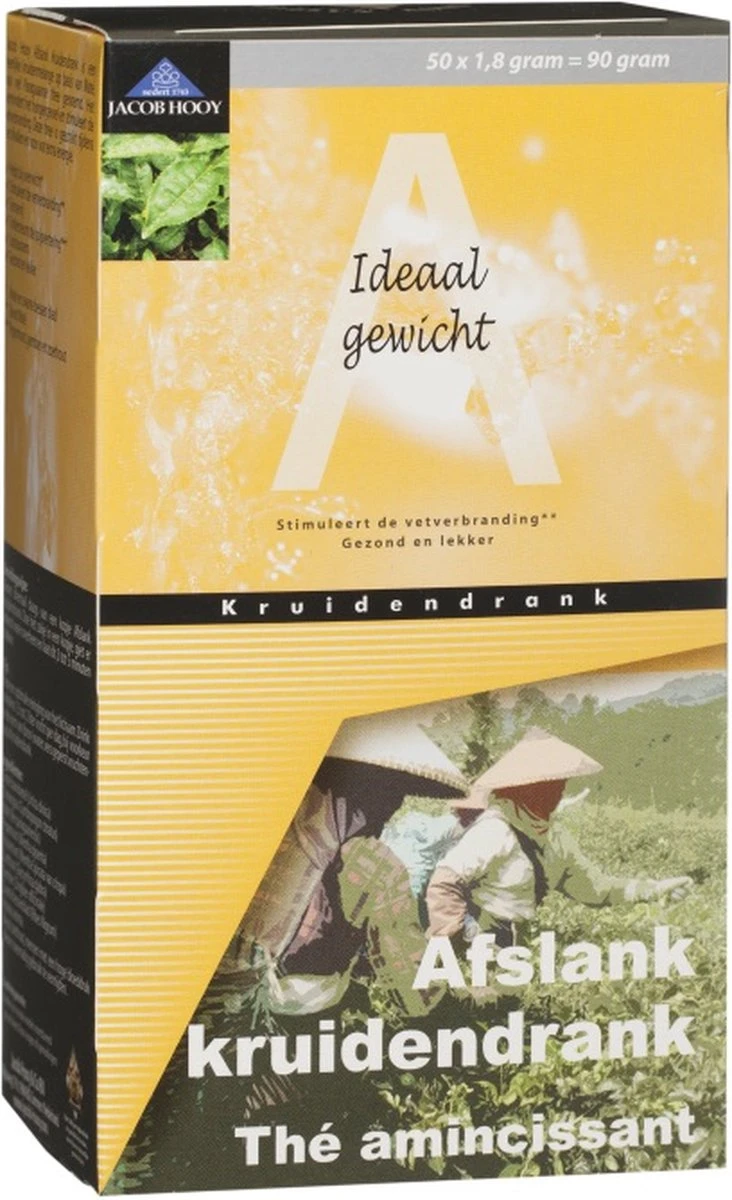 Jacob Hooy Afslank kruidendrank is een heerlijke kruidenmelange op basis van Mat, ook wel Paraguaanse thee genoemd. Het vermindert het hongergevoel en stimuleert de vetverbranding. Deze thee is geschikt tijdens het afvallen en voor wat extra energie. Helpt bij overgewicht (Mate, bessenblad zwart), Stimuleert de vetverbranding (Mat), Sennevrij, ondersteunt de spijsvertering (Pepermuntblad, gember, zoethout), looizuurarm, gezond en lekker.
