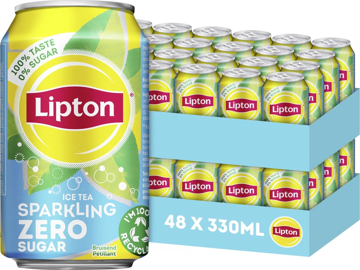 Lipton Ice Tea Sparkling Zero – een heerlijk verfrissende ijsthee, zonder suiker vol van smaak – 48 x 330 ml – Voordeelverpakking