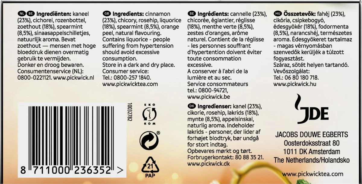 | Verpakkingsinhoud | 12x 20 theezakjes |