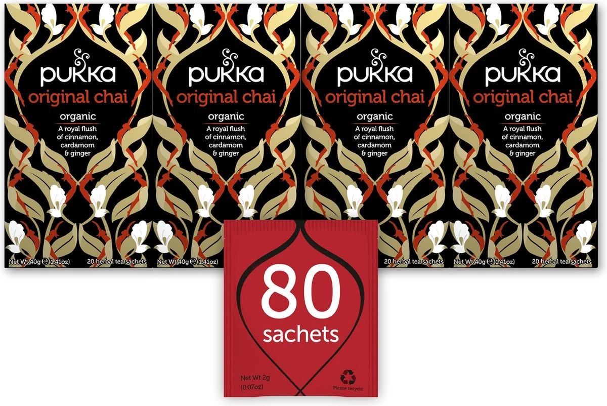 Pukka Original Chai is een blend met kaneel, zwarte thee, gember, kardemom en zoethout.