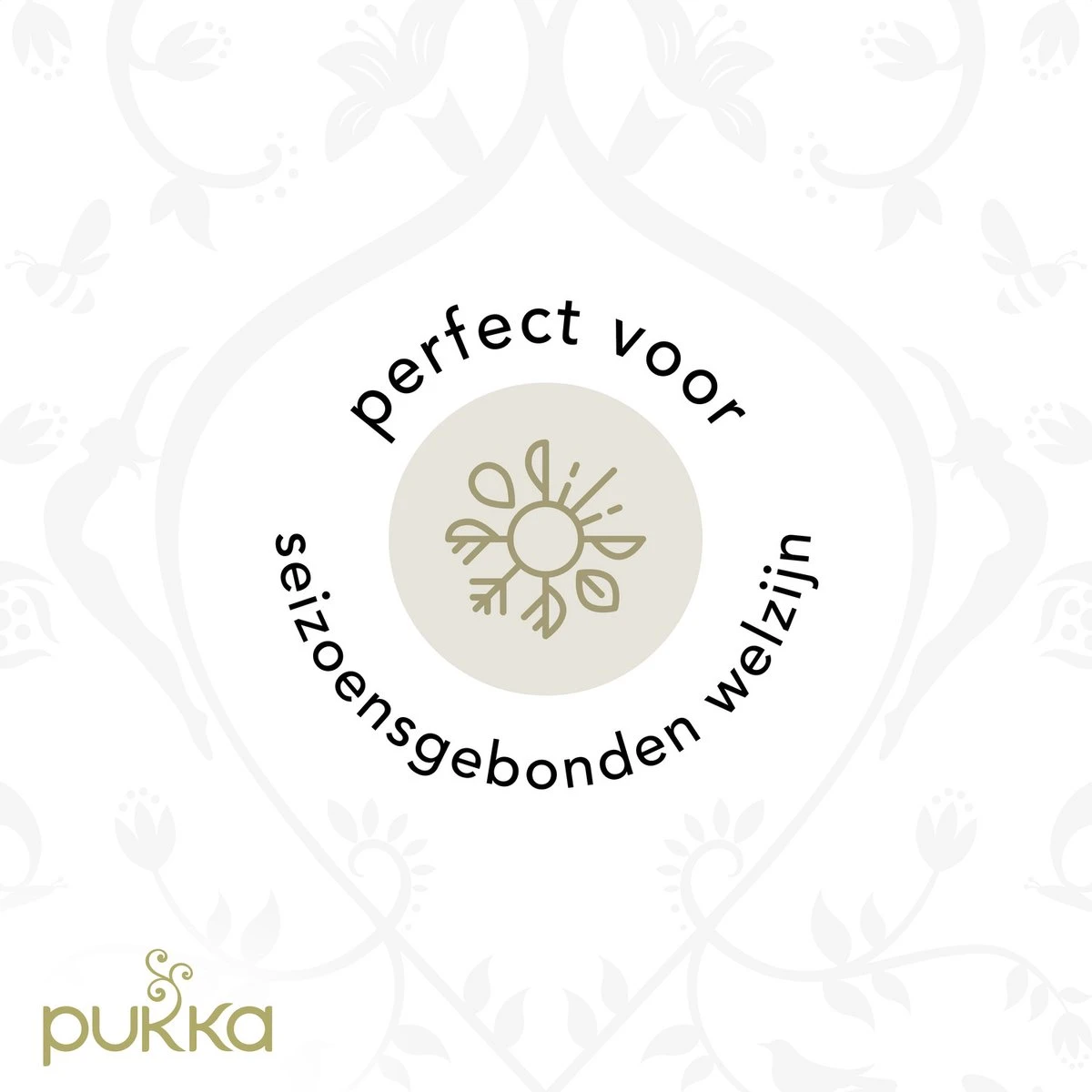 Voel je elk seizoen goed met deze selectie van heerlijke biologische kruidentheeën. Welke smaak je ook kiest, elke blend is deskundig samengesteld om jouw zintuigen te prikkelen en comfort te bieden. De Pukka Support Kruidenthee bundel bevat Lemon, Ginger & manuka, Elderberry & Echinacea en Turmeric gold (20 theezakjes van elke variant). Een bundel vol met krachtige biologische ingrediënten om verwarming te bieden en seizoensgebonden welzijn te ondersteunen. Laat de kruiden tot 15 minuten in vers gekookt water trekken. Door alleen de hoeveelheid water te koken die je nodig hebt, wordt elk kopje Pukka thee zo duurzaam mogelijk.